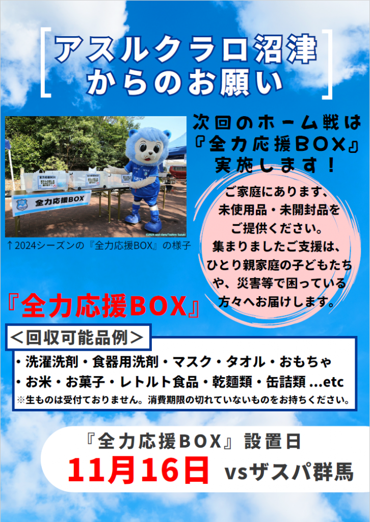 【11月16日(日) ザスパ群馬戦】全力応援BOX設置について
