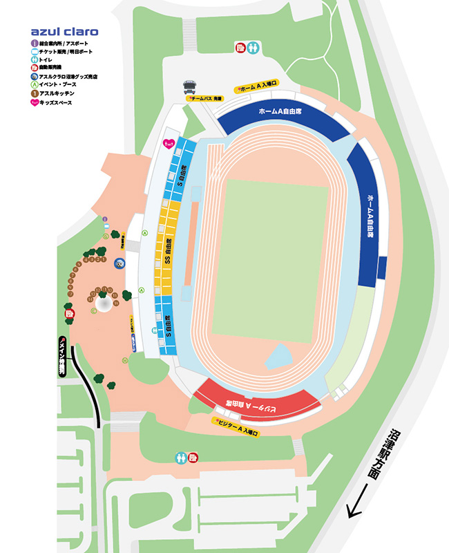 ・それ以外の席種はアスルクラロ沼津の応援席となりますので、ビジターチームグッズの着用しての応援はできません。
