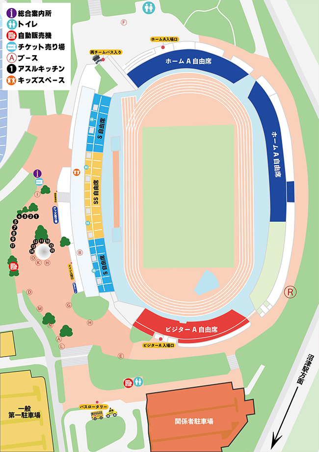 • ・ホームゲーム開催時、愛鷹広域公園内駐車場の一部は関係者駐車場となり、そちらへの一般の方の駐車はできません。