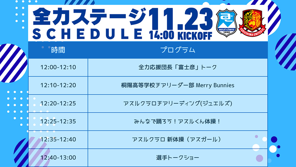 今季はなかなか勝利を飾れず、苦しい時をサポーターとともに歩んできた。アスルに関わる全員が募らせてきた悔しさをホーム最終戦で晴らし、そして来たる敵地での最終節で残留を掴み取るためにー。勝点3だけを見据えて、“アスル一丸”となって闘う。