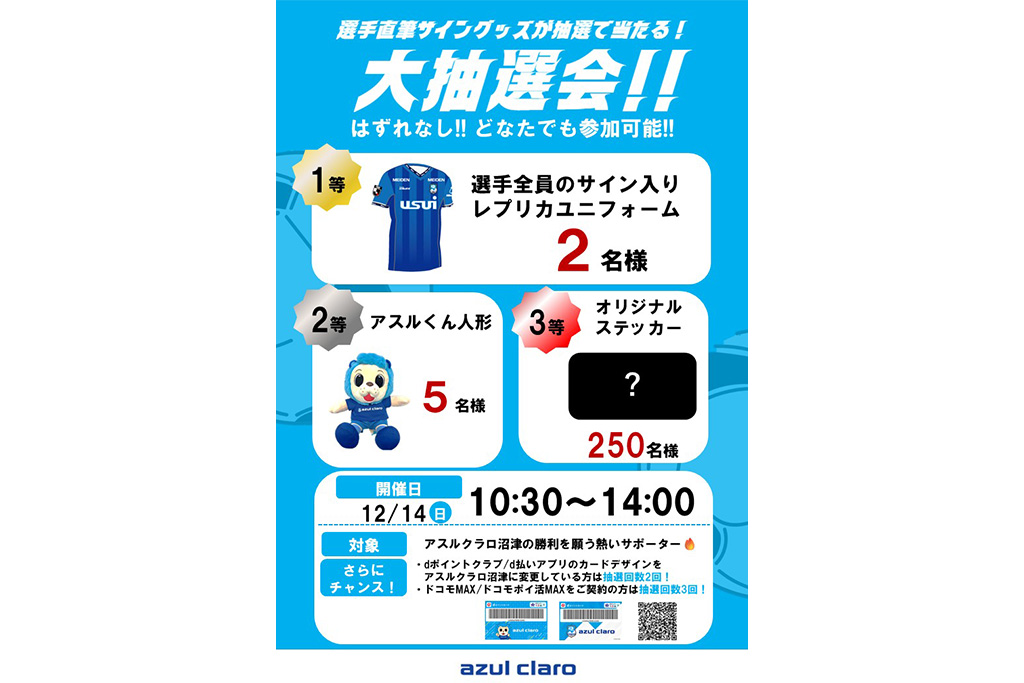 ・それ以外の席種はアスルクラロ沼津の応援席となりますので、ビジターチームグッズの着用しての応援はできません。