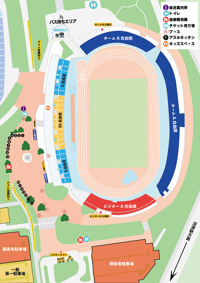 • ・ホームゲーム開催時、愛鷹広域公園内駐車場の一部は関係者駐車場となり、そちらへの一般の方の駐車はできません。
