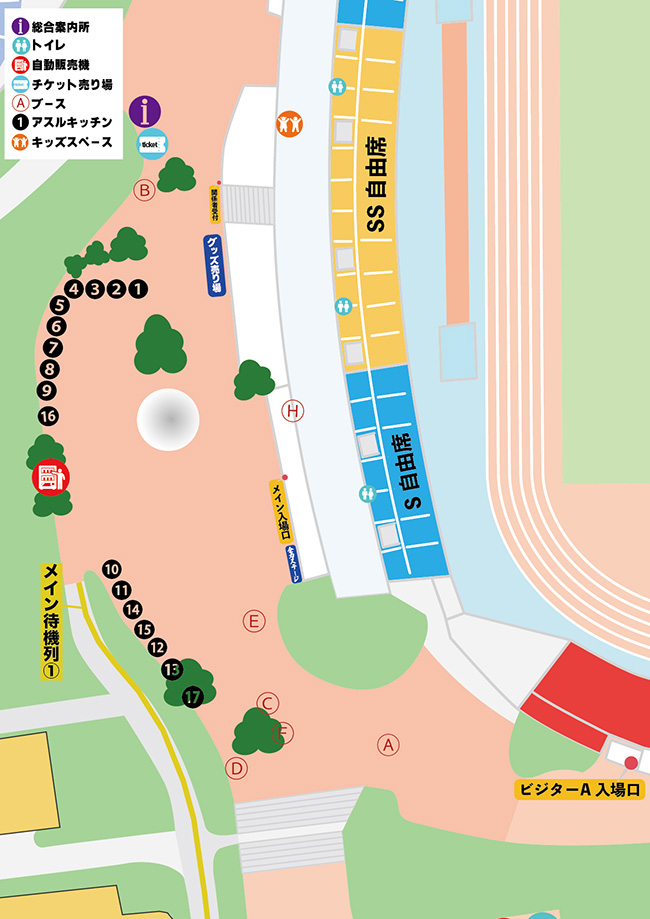 ・入場は個別にご案内いたしますので来場の再任メインスタンド入場口の係員にお声がけください。