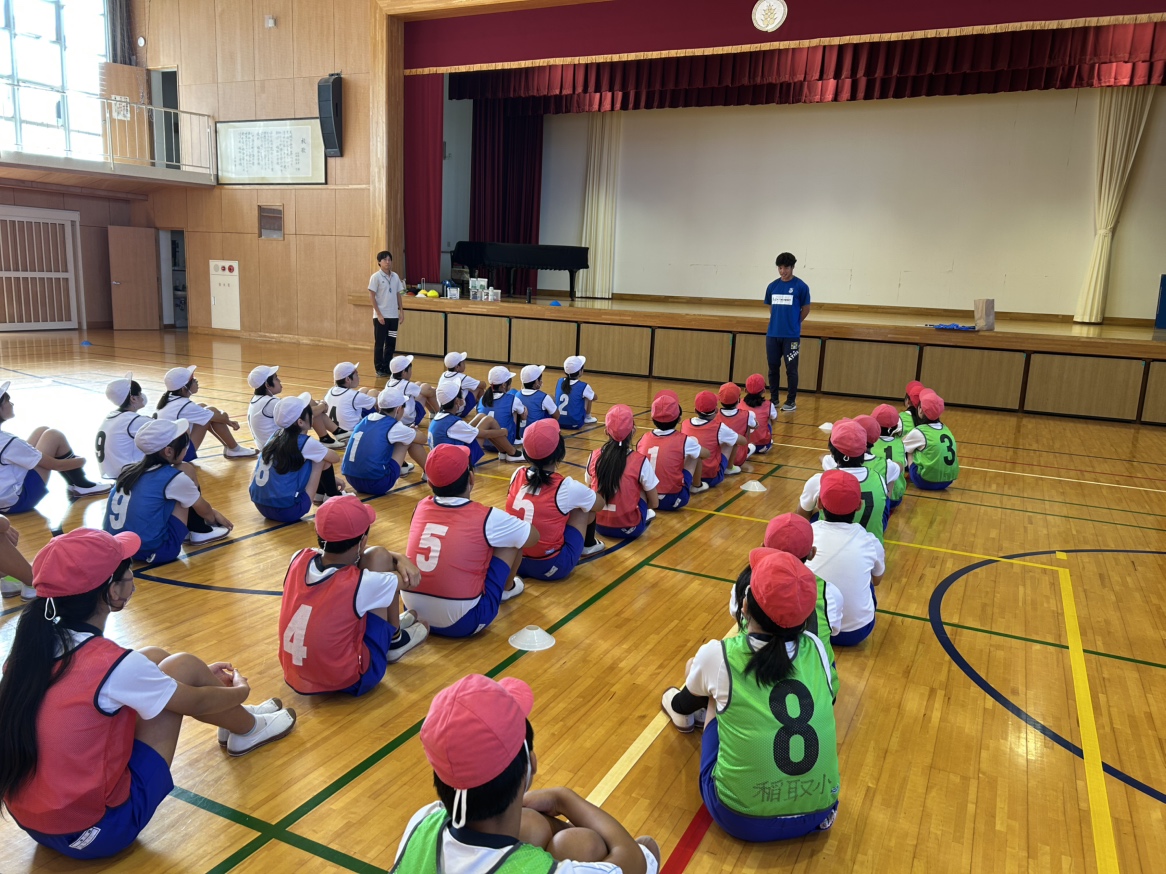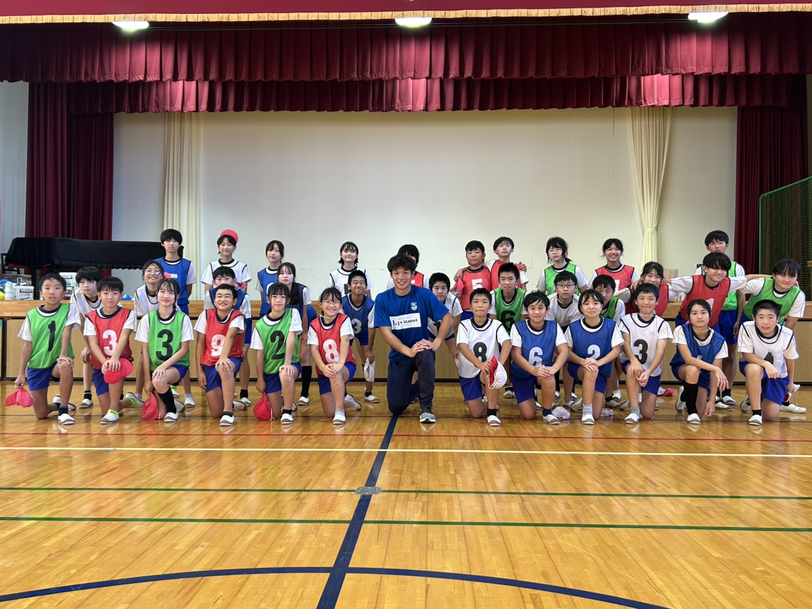 6年生のクラスを訪問し、6時間目の授業で子どもたちと一緒にサッカーを行いました。
