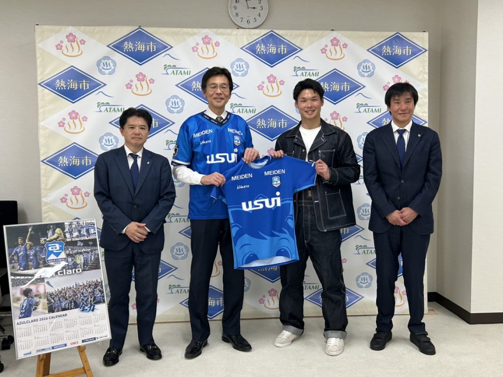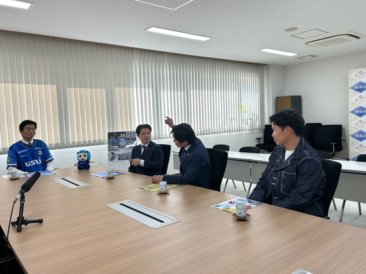 2/6(金)クラブ代表 高島雄大、中山雅史 C.R.O.、#44 山田晃士 選手が、熱海市役所を訪問しました。