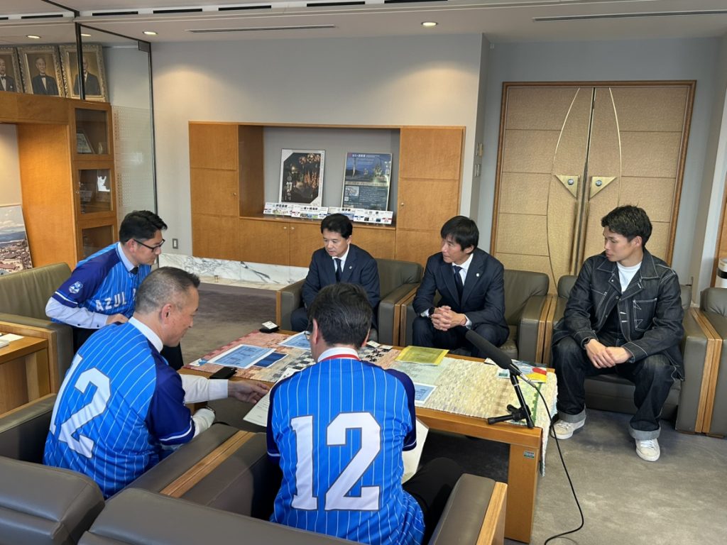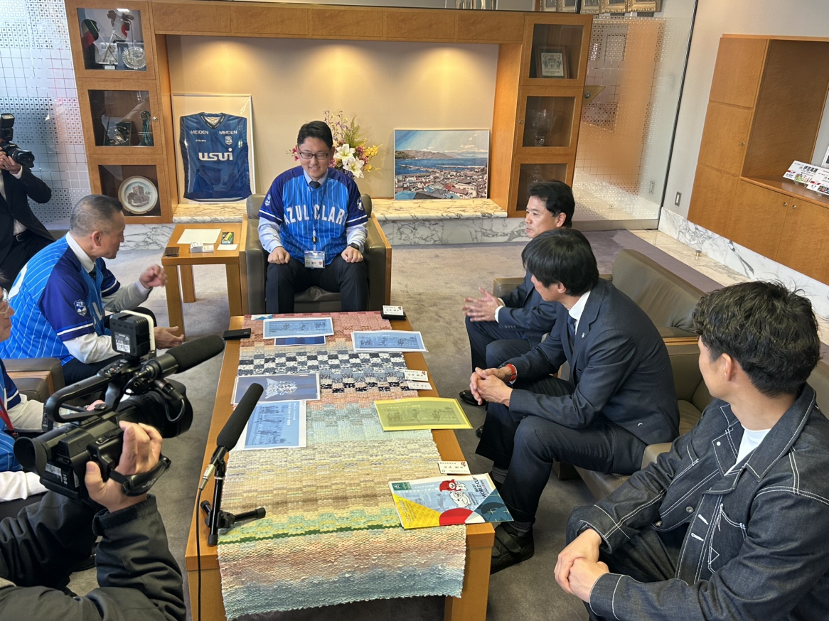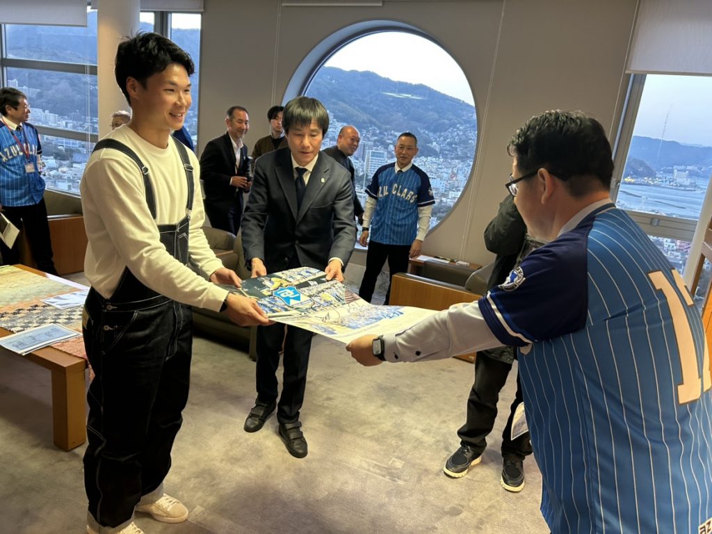 2/6(金)クラブ代表 高島雄大、中山雅史 C.R.O.、#44 山田晃士 選手が、伊東市役所を訪問しました。