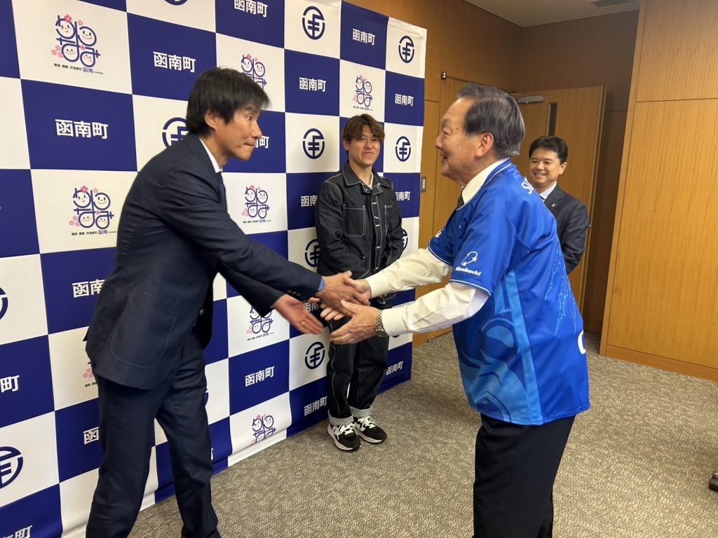 2/25(水)クラブ代表 高島雄大、中山雅史 C.R.O.、#23 滝裕太 選手が、函南町役場を訪問しました。