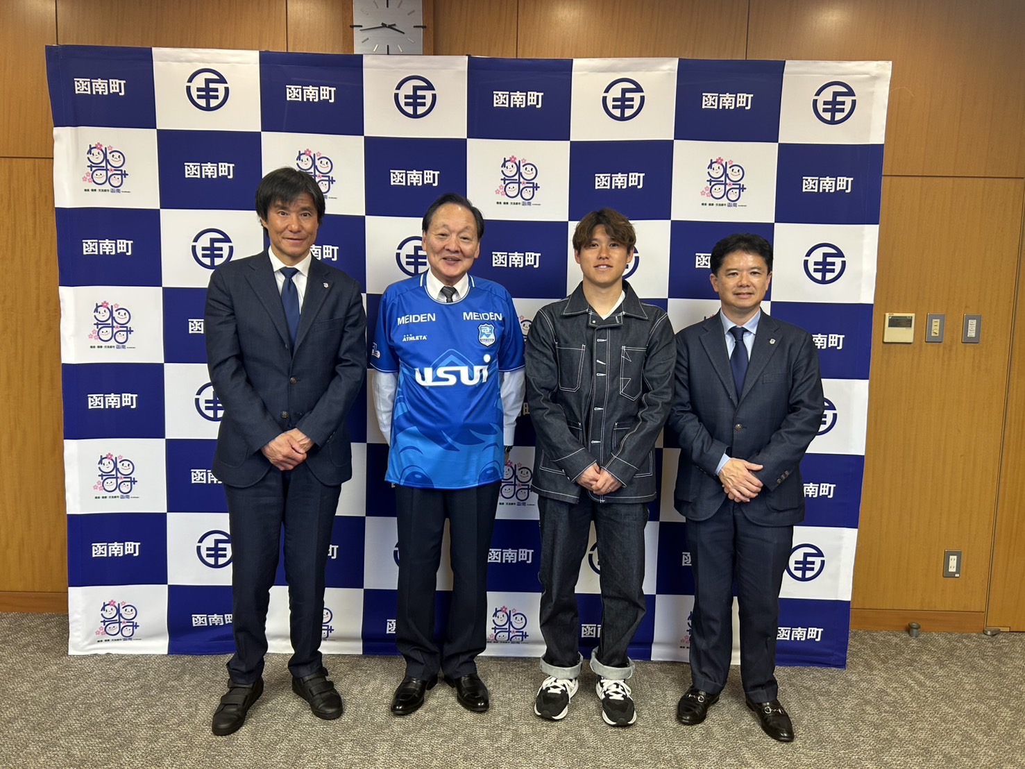 3月21日から始まるJFLカップを控え、仁科 喜世志 町長にご挨拶いたしました。