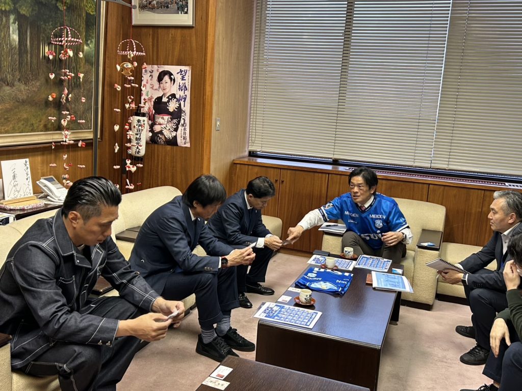 3月21日から始まるJFLカップを控え、岩井茂樹 町長にご挨拶いたしました。