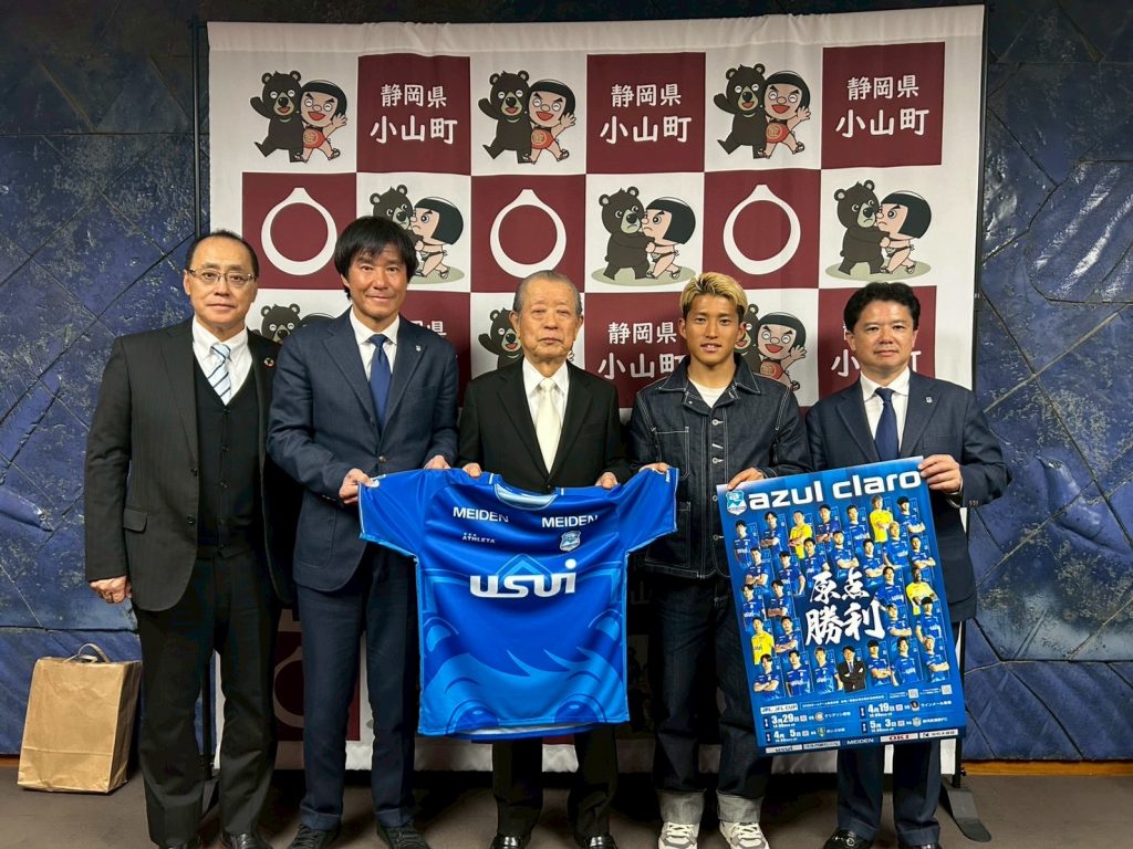 3月19日(木)クラブ代表 高島雄大、中山雅史 C.R.O.、#35 向井ひな太 選手が、御殿場市役所を訪問しました。