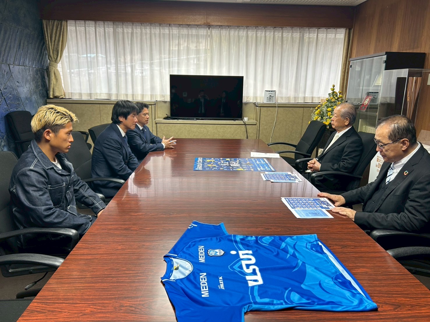 3月21日(土)から始まるJFLカップを控え、込山正秀 町長にご挨拶いたしました。