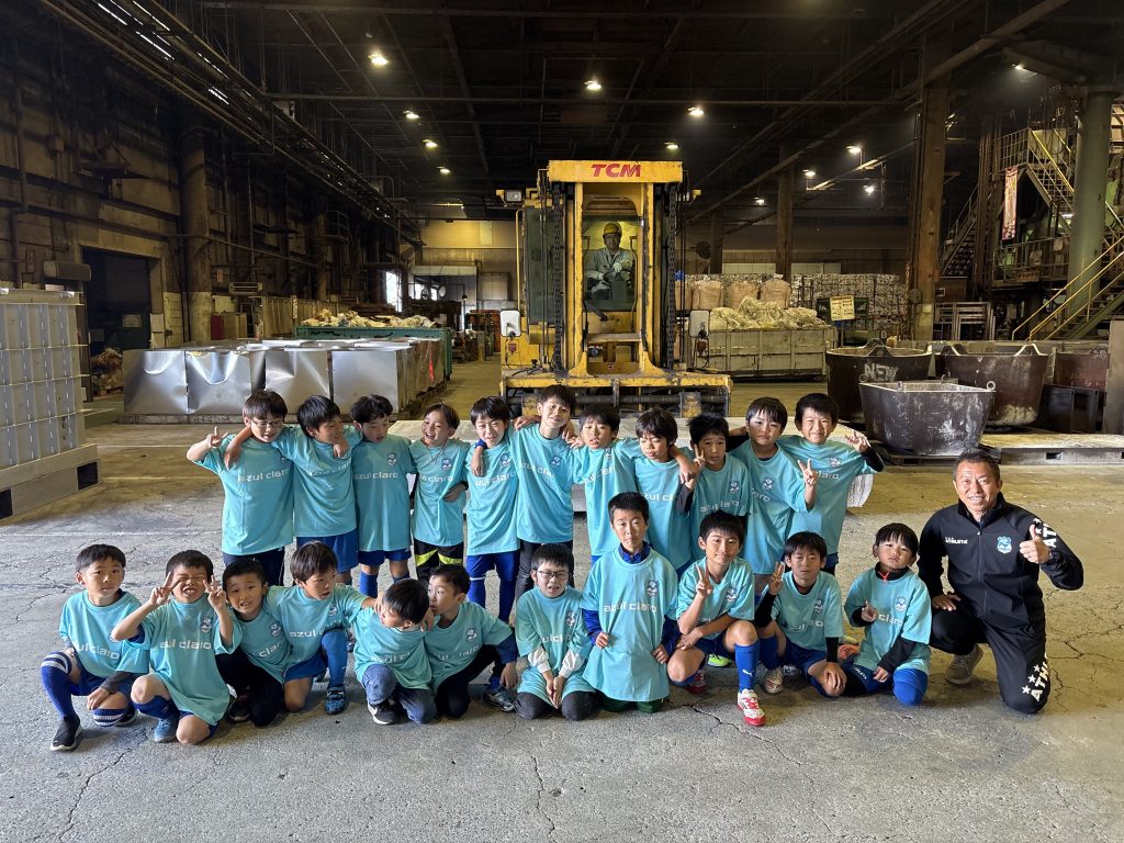 午前中はサッカー教室、午後はアルテミラグループ様での工場見学をさせていただきました。
