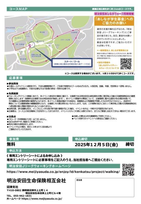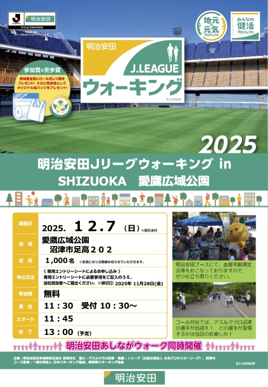 明治安田Jリーグウォーキング in SHIZUOKA 愛鷹広域公園 開催のお知らせ