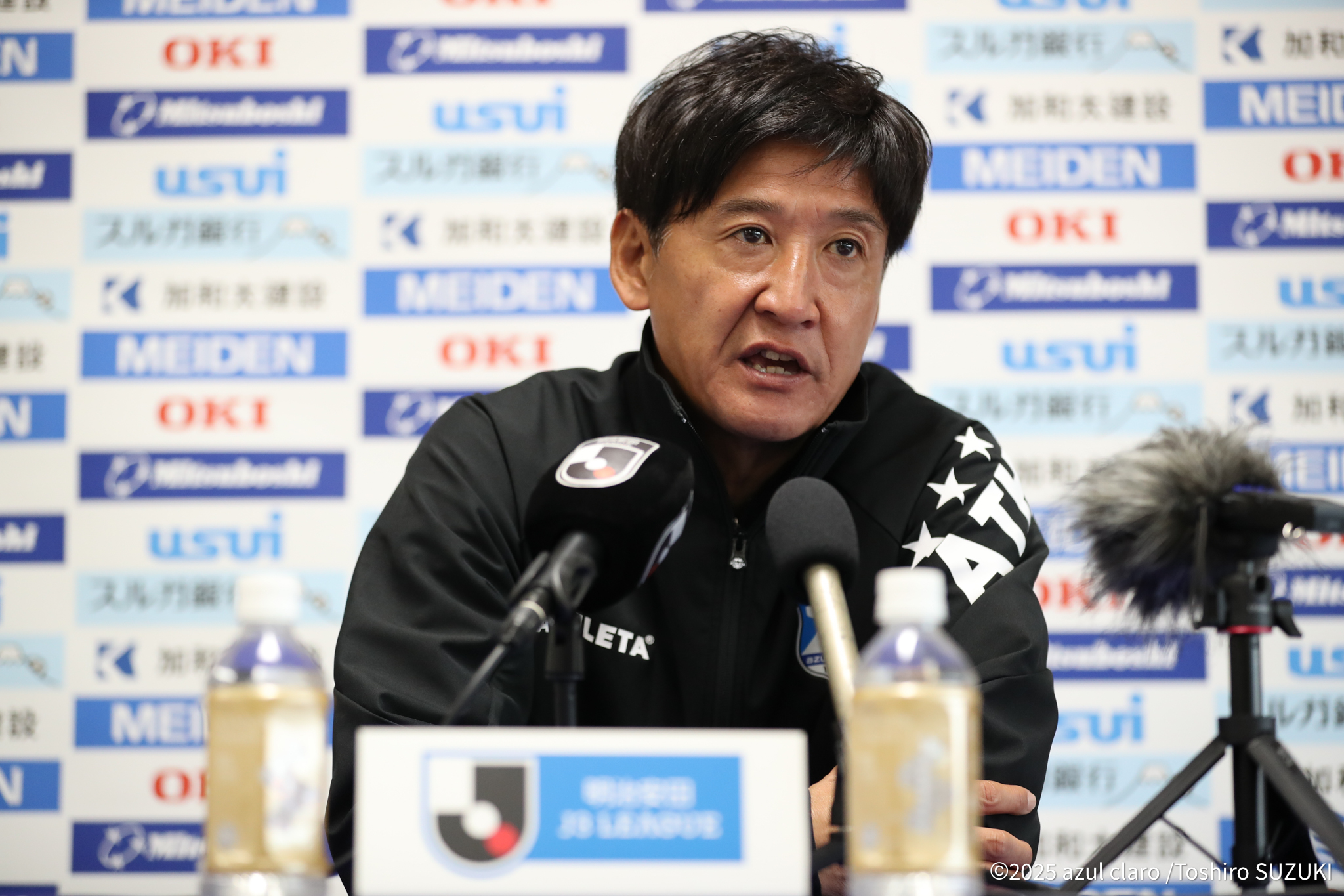 ゲーム内容は、前半明らかに群馬さんの方が勝ちたい気持ちでうちの選手より勝っていて、そこで簡単に2失点してしまったことが非常に大きかったと思います。このような話を何度もしていますが、残り2試合でこのようなことが起きないように、ちょっと言い方は悪いかもしれませんが、選手たちのケツを叩いてでもやっぱりやらせなければ試合には勝てないので、残り2試合は勝利に向けてやっていくだけです。