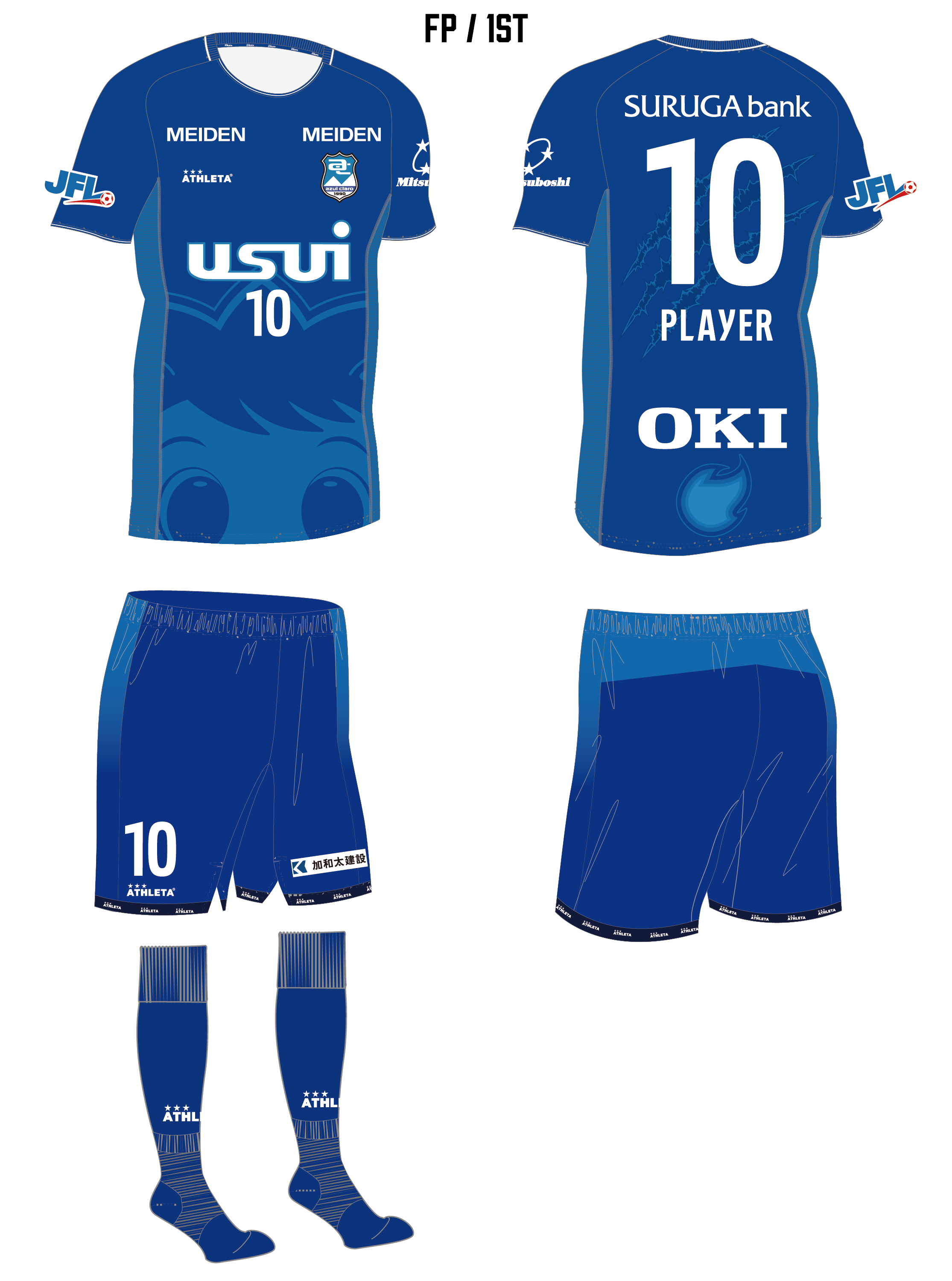 azul claro(アスルクラロ)の名の通り「明るい青」をベースに前面には、東部地域とのつながりを育んできたクラブマスコット「アスルくん」をデザインし、