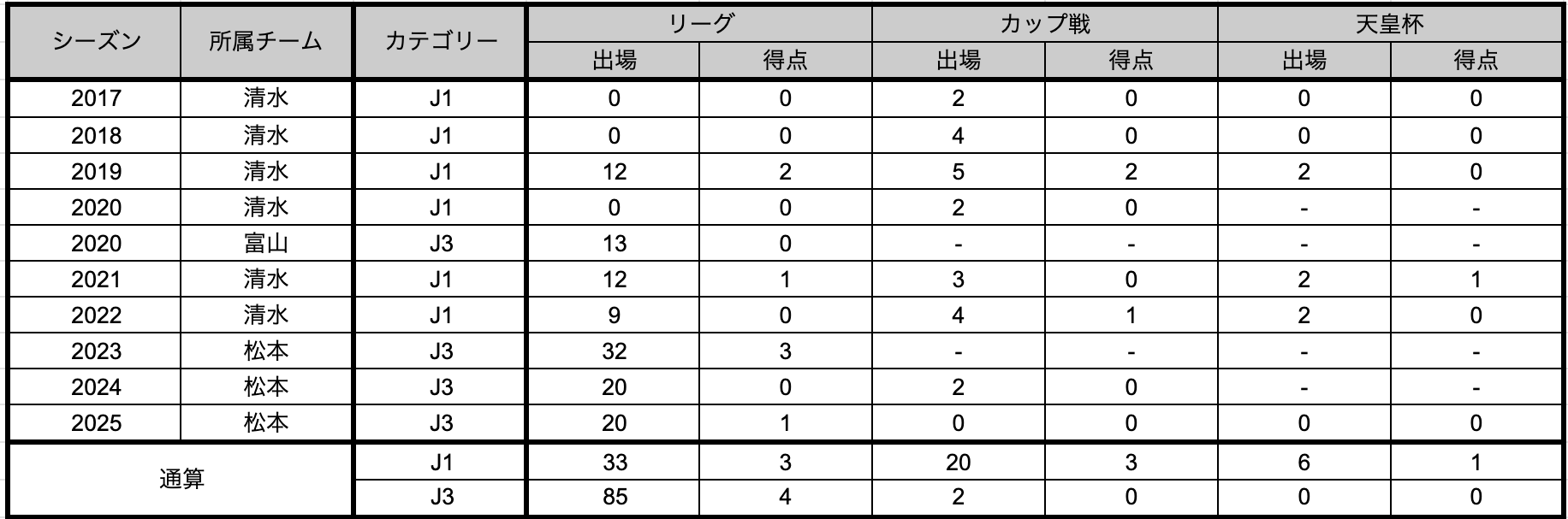 ▌通算出場記録