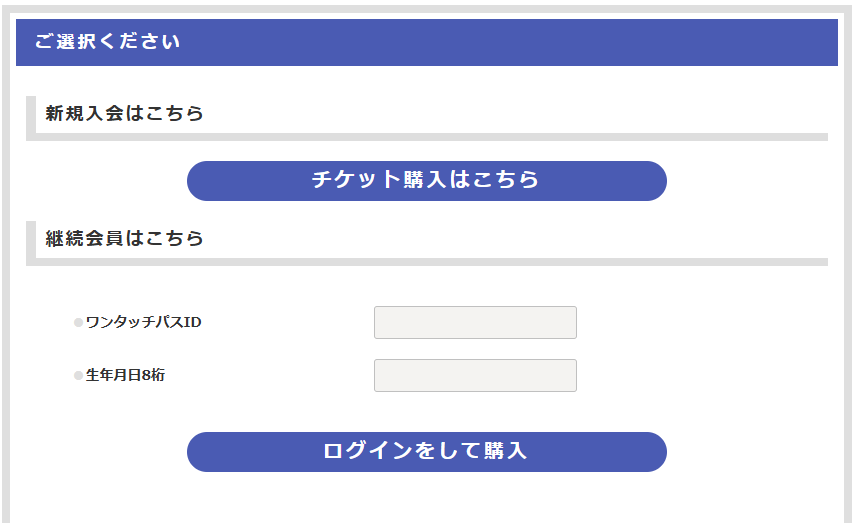 ・2025シーズンより継続の方は「シーズンシート入会受付」よりワンタッチパスIDと生年月日をご入力の上、お手続きください。
