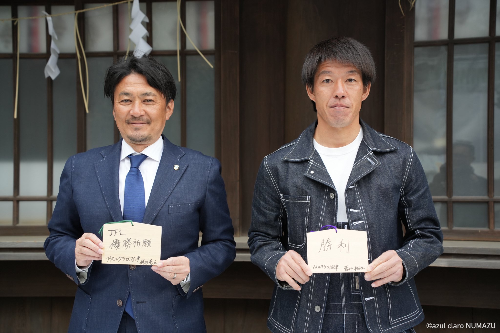 【TOP】必勝祈願を行いました。 2026/03/17 3月11日(水)、三島市にあります三嶋大社にて、必勝祈願をおこないました。 怪我なく闘えるよう祈願をして参りました。 また、チームを代表して篠田監督と菅井選手が絵馬に今シーズンの抱負を記載しました。 篠田善之 監督 「JFL 優勝祈願」 菅井拓也 選手 「勝利」 最新一覧 次の記事へ HOME ニュース 【TOP】必勝祈願を行いました。